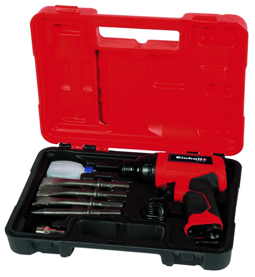 Le ciseau pneumatique Einhell TC-PC 45 est une machine puissante pour travailler la pierre ou les matĂ©riaux mĂ©talliques lors de travaux de dĂ©molition et de rĂ©novation Ă l’intĂ©rieur et Ă l’extĂ©rieur de la maison. Pour un travail en toute sĂ©curitĂ©, le ciseau est dotĂ© d’une poignĂ©e en caoutchouc antidĂ©rapante intĂ©grĂ©e et ergonomique. Avec une pression de fonctionnement maximale de 6,3 bars, le burin offre une frĂ©quence d’impact maximale de 4 500 s/min. La force d’impact est de 1,2 J et la consommation d’air est de 113 l/min. Il y a une vis de rĂ©glage pour ajuster l’air comprimĂ©. Le ciseau est maintenu fermement grâce Ă la connexion hexagonale. Les meilleures performances sont obtenues en utilisant un tuyau d’un diamètre intĂ©rieur de 9 millimètres ou plus. Grâce Ă ses nombreuses fonctions, ce ciseau est très polyvalent. LivrĂ© avec un jeu de burins de 120 mm en 4 parties, 1 bouteille d’huile pour machine (sans contenu), 1 tĂ©tine et 1 ressort de tension. Fourni avec une mallette de transport et de rangement.